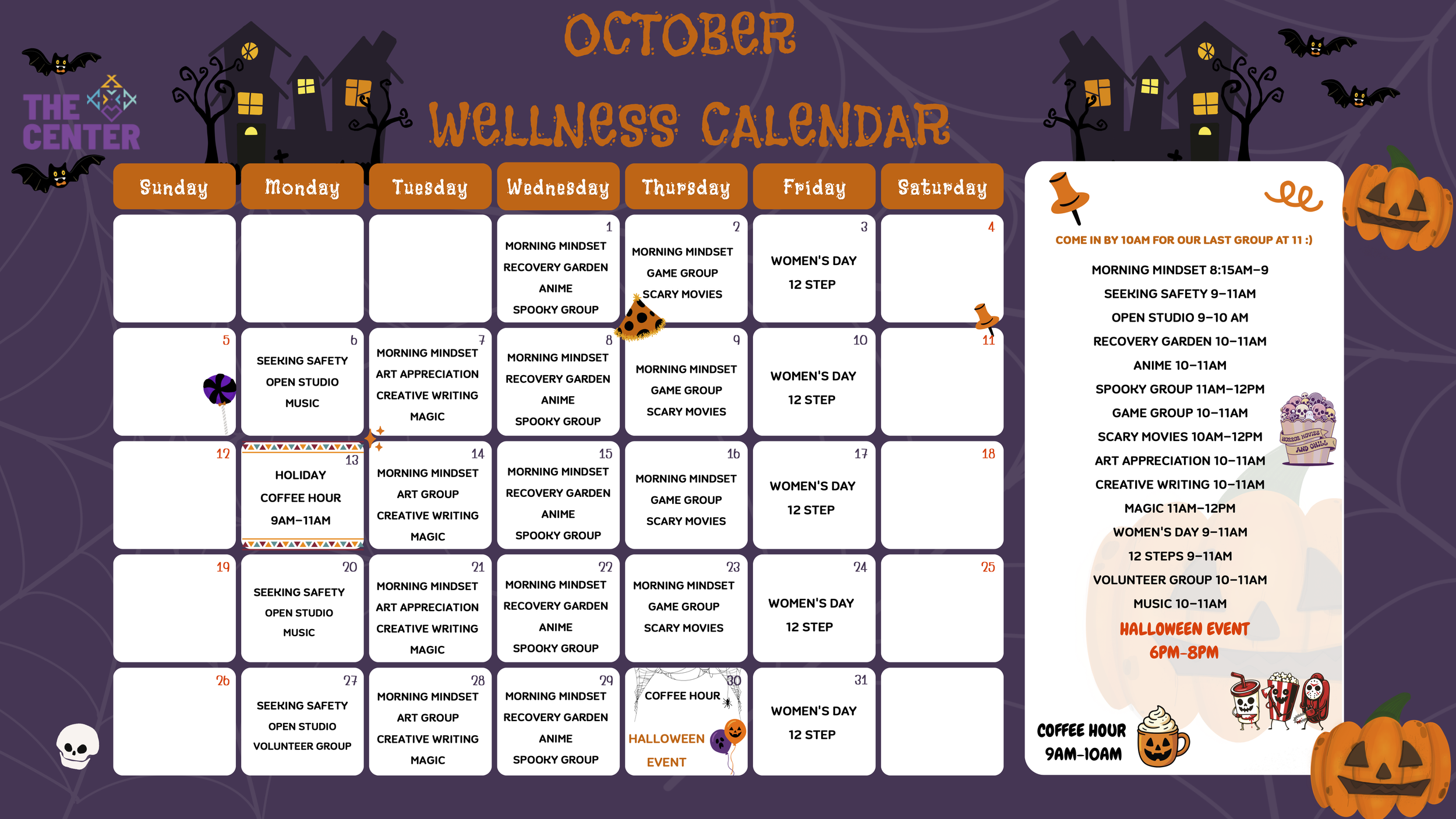 Welcome to our Calendar of Events! Here, you'll find a comprehensive listing of all the exciting happenings at The Center in Hollywood. From our Wellness group programming schedule (see below) to special occasions, this calendar is your go-to resource for staying up-to-date with our community.